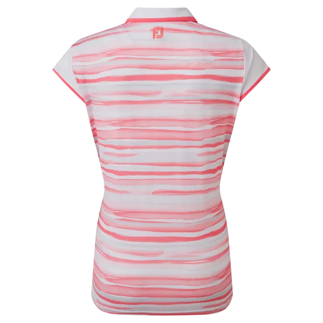 The FootJoy Ladies Cap Sleeve Colour Block Lisle Golf Polo Shirt features contemporary patterns & colours to deliver style while performance fabrics help to keep you cool & dry on the golf course.