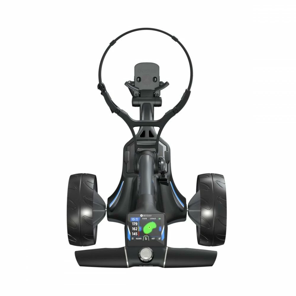 Motocaddy’s award-winning M5 GPS offers a fully‑integrated GPS built into a super-responsive 3.5” touchscreen display. Demonstrating quality this GPS comes with 40,000 pre-loaded courses with distances to the green, essential hazard information, and the ability to move the flag position, the M5 GPS is a premium option for GPS trolley technology. The M5 GPS also employs plenty of quality of life options such as a clock, round timer, and score tracking.