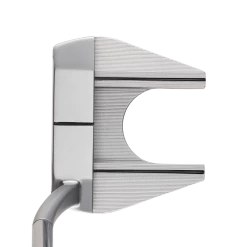 The Odyssey White Hot OG Stroke Lab Golf Putter | #7 Nano is the more compact version of the ever-popular #7 shape. Its long flow neck hosel creates 40 degrees of toe hang and makes it extremely well balanced, and the hosel shape gives a clear view of the ball. Compared to the full size #7 model, the Nano features a straight alignment line instead of dots on the leading edge of the putter which helps for lining putts up.