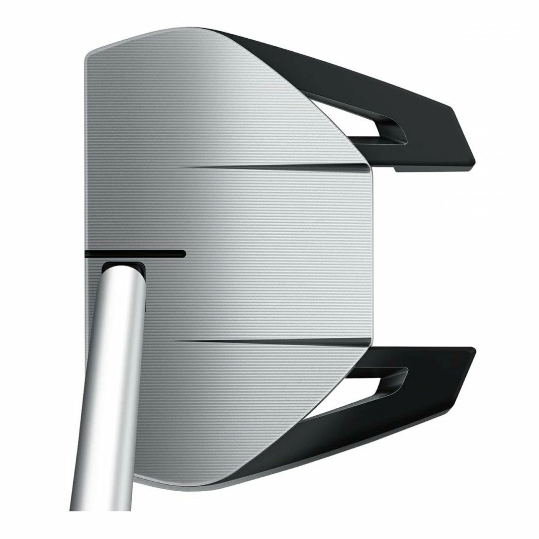 The Spider GT putter incorporates TaylorMade’s Pure Roll² Insert with grooves at a downward 45° angle to improve topspin across the face which results in enhanced levels of stability, roll characteristics, and consistent distance control. The specially designed weighting system means that you will have greater levels of forgiveness for off-centre strikes with only 18% of the weight centred in the middle to stabilise ball deflection.